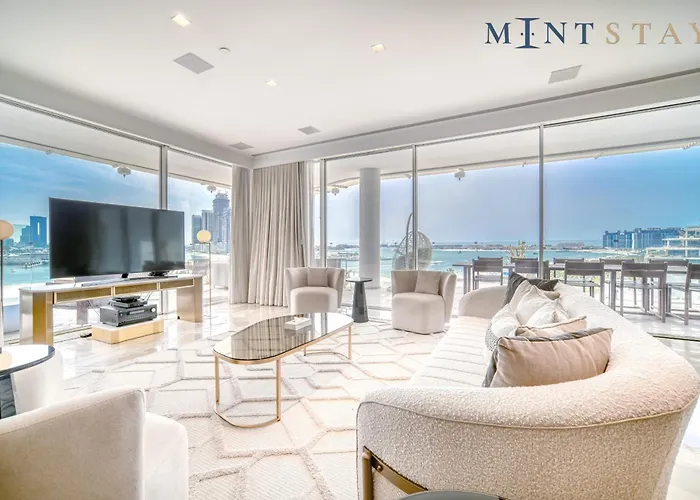O apartamento Five Palm Jumeirah Residences - Mint Stay oferece 7 quartos com pátio, varanda e área de jantar para uma estadia confortável em Dubai. Algumas unidades incluem chuveiro de abrir, casa de banho à parte e banheira nas casas de banho.